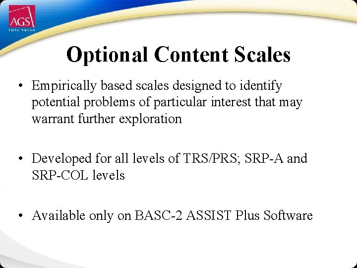 Online administration, scoring, and reporting are available for the trs and prs scales. Assist software (brand new design too!) integrates scoring and basc 2. Reports are offered for individuals and groups.